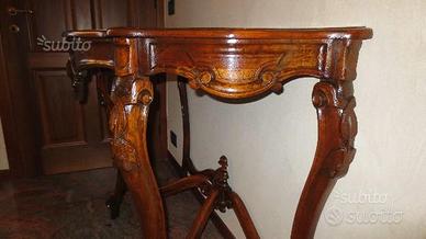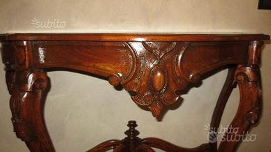 consolle luigi filippo 1800 lombarda originale in noce intagliata su massello ,piano in radica di noce finitura a gommalacca dimensioni 118x86x54