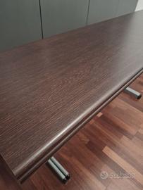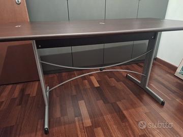 Elegante tavolo consolle con piano in legno e struttura in metallo. - Piano in legno finitura scura. - Gambe in metallo con design moderno. - Ideale come piano d'appoggio.