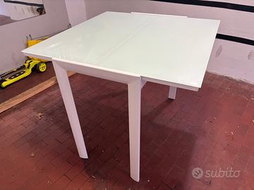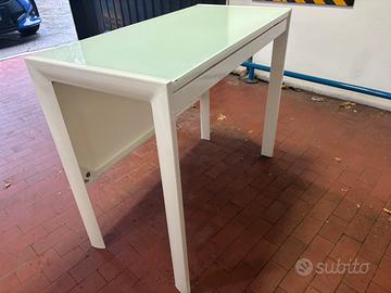 Tavolo consolle a ribalta com piano in vetrocerica e gambe in acciaio verniciate bianche. Presenta dei piccoli segni di usura come da foto Vienr venduto già montato