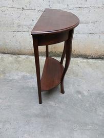 Elegante tavolo consolle in legno dallo stile vintage, con raffinata forma a mezza luna.