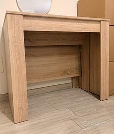 Tavolo consolle allungabile in ottimo stato di colore legno chiaro con 4 prolunghe Misure da chiuso 51x90 Misure da aperto al max 240x90