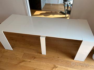 Tavolo consolle bianco, con 4 allunghe.