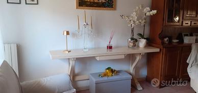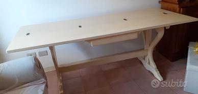 tavolo a ribaltina con piano pieghevole in legno massello arte povera con cassetto centrale laccato colore avorio misure lunghezza 2 m per larghezza 80 aperto e 40 chiusa altezza 80 possibilità di consegna a casa Se nelle vicinanze prezzo 150 € tel 328 098 5754