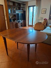 Tavolo consolle in noce, misure 110 cm per 55 cm chiuso uso consolle, apribile a 110 cm (tondo), a 165 cm di lunghezza con una prolunga e fino a 220 cm ( con due prolunghe da 55 cm) e sempre largo 110 cm
