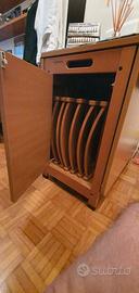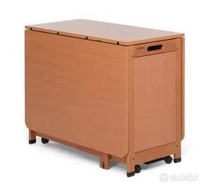 Foppapedretti Tavolo Copernico Noce. Forma del piano del tavolo: Forma rettangolare, Tipo: Tavolo allungabile, Colore del piano scrivania: Noce. Lunghezza: 46 cm, Larghezza: 910 mm, Altezza: 740 mm. Il tavolo pieghevole Copernico di Foppapedretti ha una solida struttura in legno massiccio di faggio verniciato noce, con robusti piani apribili secondo le esigenze e piedini in nylon. Quando è chiuso, diventa una pratica consolle con maniglia per il trasporto, facilitato da ruote a scomparsa antigraffio apribili a scatto. Da chiuso può anche contenere 6 sedie Luna, vendute separatamente. I punti di forza di Copernico di Foppapedretti sono: - il tavolo ha piani pieghevoli che si aprono in base alle esigenze e al numero di ospiti - struttura solida in legno massiccio di faggio - possibilità di contenere 6 sedie Luna, vendute separatamente - quando è chiuso è un ottimo piano d'appoggio e occupa pochissimo spazio - facile da trasportare grazie alle ruote a scomparsa antigraffio apribili a scatto. Unico difetto, visibile nella foto, è nello sportello di chiusura dove si ripongono le sedie. Lo sportello si chiude regolarmente. Date le dimensioni e il peso non è prevista spedizione ma solo ritiro a Milano (zona Naviglio Grande) da parte dell'acquirente.