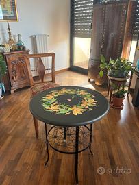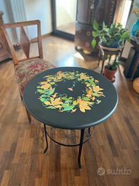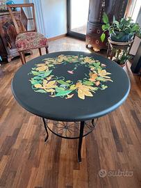 Piano tavolo tondo di pregio di nuova manifattura, su base lignea, completamente realizzato a mano, con materiali di qualità e con tecnica innovativa che riproduce fedelmente l’effetto ad intarsio della “pittura di pietra” rinascimentale, che utilizzava le pietre preziose per creare effetti cromatici unici nel suo genere. Il suo motivo floreale di Magnolie e Convolvolo si abbina facilmente sia all’arredamento antico che a quello moderno. Pezzo unico non riprodotto in serie. Misure: Diametro = 60 cm Spessore = 2,3 cm. Il supporto in metallo non e’ incluso nel prezzo e ha il solo scopo di presentare il prodotto.