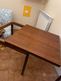 Tavolo anni 60 da restaurare; gambe smontabili, il puano ruota e si apre a libro