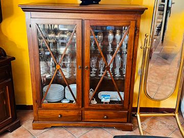 Vendo tavolo , credenza a vetri e vetrina in vero legno di noce scuro
