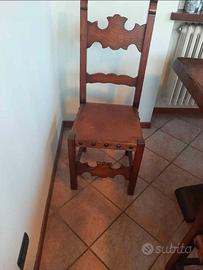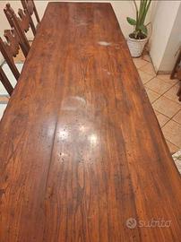 Vendo tavolo in legno massello con 12 sedie con seduta in cuoio.Lunghezza 295cm,larghezza 86cm