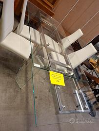 Tavolo in cristallo lungh chiuso:180x100 lungh aperto:280x100 +4 sedie in ecopelle cod.1809.050 Disponibile al mercatino di legnano PREFERIBILE CONTATTO TELEFONICO Mostra numero