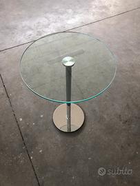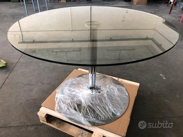 Tavolo in cristallo temperato, base in acciaio diametro 120 cm , altezza 74 cm , (base in acciaiob75 cm