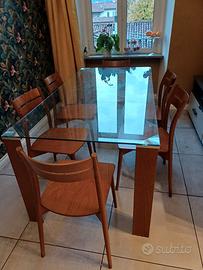 vendo tavolo cristallo calligaris 90x180 con 6 sedie legno made in italy prezzo di acquisto 2500 euro