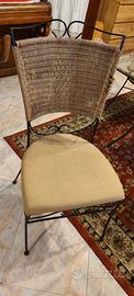 Vendo causa trasloco Tavolo con base in cristallo e struttura in ferro battuto. Il tavolo è in ottime condizioni pari al nuovo. Le 4 sedie che lo completano sono un po' rovinate nello schienale ma la seduta è integra. Non spedisco.