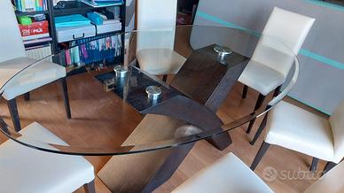tavolo di design con gambe in wenge' e piano in cristallo (presente qualche graffio) misure 210x110