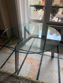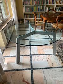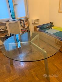 Vendo per inutilizzo tavolo di design Desalto in cristallo trasparente e acciaio. Diametro 128 cm, altezza 73 cm regolabile. Ottimo stato, qualche graffio da usura visibile solo con sole battente. 6 posti. Desalto Tavolo Link Tondo è stato disegnato da Hannes Wettstein (2000) per Desalto.