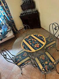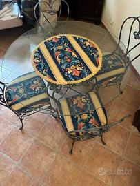 Come da foto completo di 4 sedie e cuscineria sia da interno ed esterno diametro 120