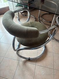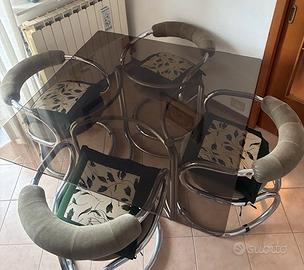 perfetto tavolo quadrato lato 1,20 metri in cristallo e 4 comodissime sedie a poltroncina. Design anni '70