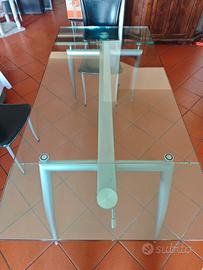 Vendo tavolo di cristallo e 6 sedie con schienale da rivestire, misura 170/230