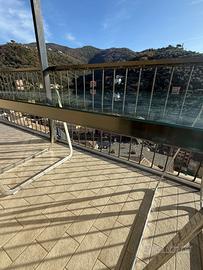 Le basi in acciaio presentano qualche punto di ruggine. Il piano è semplicemente appoggiato sulle basi quindi non avendo agganci può essere appoggiato eventualmente su diverse basi di vostra scelta.