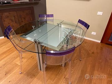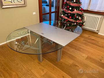 Presenta lievi segni di normale utilizzo sul piano in cristallo e un piccolo segno su una gamba in zona non visibile (nulla che comprometta estetica o funzionalità).