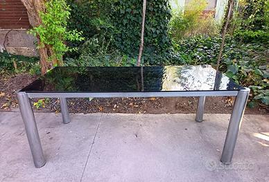 Tavolo cromato con piano in vetro. Dimensioni: - Larghezza 181 cm - Altezza 72 cm - Profondità 85 cm Il ricavato verrà interamente devoluto ad una associazione di beneficenza. L'oggetto è visionabile presso la sede dell'associazione stessa finché disponibile.