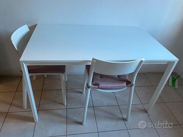Tavolo Ikea modello Vihals bianco 125x74 cm + 4 sedie plastica bianche molto resistenti