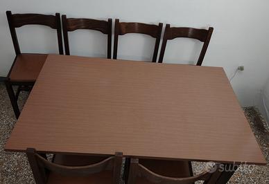 TAVOLO DA CUCINA IN LEGNO CON 6 SEDIE IN LEGNO CON SEDUTA IN PELLE MISURA TAVOLO: 124,5 lunghezza x 79,5 larghezza x 77,5 altezza