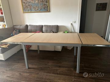 tavolo da cucina allungabile misure 130 × 85 due prolunghe da 50 cm l'una misure aperto 230 × 85 piccoli difetti in superfici, perfettamente funzionante, vendo per cambio arredo