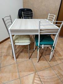 Tavolo in struttura in ferro con nr 4 sedie in ferro con seduta di due colori grigio e bianco tenute benissimo e poco sfruttate... Acquisto effettuato pochi mesi fa.