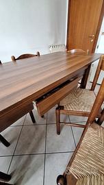 vendo tavolo cucina legno color noce con 6 sedie, tutto in buone condizioni. misure : lunghezza 125 larghezza 75 altezza 80 con 2 prolunghe 27 cm ciascuna.