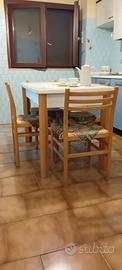 Tavolo da cucina con 4 sedie. Ottime condizioni. Le sedie sono di legno impagliate in ottime condizioni. Incluso nel prezzo anche un mobile da cucina con due comode ante abbinato al tavolo.