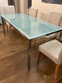 Tavolo Ikea con struttura in acciaio e piano in vetro temperato misure 180x85 H 75 .