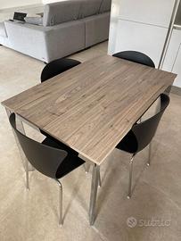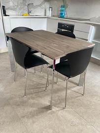Tavolo Sigma di Veneta Cucine Top in Noce Rustik con gambe cromate Misure: 120x80 + 2 allunghe (8-10 persone) Le sedie sono in vendita a parte.