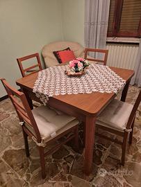 Tavolo da cucina in legno per 4 persone. Piano estensibile fino a 6 persone. Completo di 4 sedie.