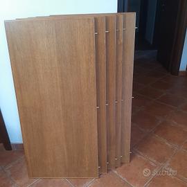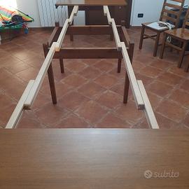 tavolo 1.20x1.20 con 5 allunghi di 60 centimetri totale aperto metri 4.20 x1.20circa.Abbinato al tavolo vendo sei sedie. Non spedisco.