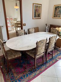 Bellissimo Tavolo da cucina 6 posti con sedie , legno Massello , piano in marmo Bianco Ritiro sul posto , (Codevigo) 1000€ Info 3472211240
