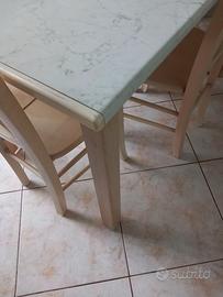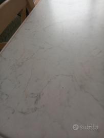 TAVOLO CUCINA CON PIANO FINTO MARMORIZZATO IN LEGNO ....MISURE LUNGHEZZA TAVOLO 120/160 P 69 80 euro PIÙ 6 SEDIE 150 EURO