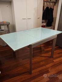 tavolo con struttura in metallo e base in vetro misure cm.90x90 da chiuso, e cm.150x90 da aperto