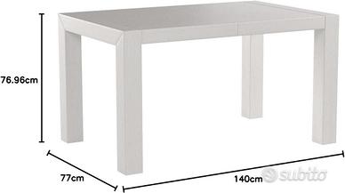 Vendo tavolo da cucina elegante e funzionale, bianco effetto legno, struttura in metallo grigio. Il sistema di allunghe lo rende perfetto per ospitare da 4 a 10 persone. Dimensioni: – Chiuso: 140 x 90 cm – Con una allunga: 180 x 90 cm – Con due allunghe: 220 x 90 cm In buone condizioni generali, presenta un piccolo difetto, che non compromette la funzionalità. Ritiro in zona Bologna-San Felice. Prezzo trattabile per ritiro veloce.