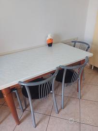 Tavolo da cucina con struttura in ciliegio e top in melamminico effetto marmo di Carrara.