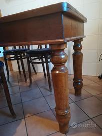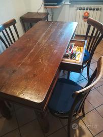 Tavolo da cucina "della nonna" in pino di fine '800. La struttura è perfetta, ha solo bisogno di una lucidata al piano. Dimensioni: 147x66x77h. Ideale per 4 persone ma ci si mangia comodi anche in 6. La struttura è perfetta, necessita solo di una sistemazione al piano, preventivata in circa 120€.