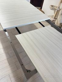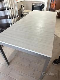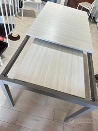 Tavolo rettangolare allungabile acquistato da Veneta Cucine, gambe in metallo color tortora, due piccole imperfezioni come da foto. Il tavolo chiuso misura 80x120, con prolunga arriva a cm 180. Ritiro a domicilio, zona Tor vergata.