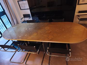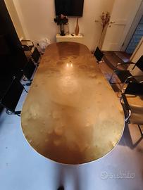 bellissimo tavolo in resina dorata. Lungo 290 cm può accomodare comodamente 10 persone. Ideale come tavolo in una grande tavola da pranzo, o in una sala riunioni di ufficio. Le sedie che vedete in foto possono essere vendute insieme o separatamente. Il costo del trasporto è indicativo, all'interno di Milano