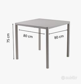 DIMENSIONI: Tavolo quadrato 80 x 80 cm con altezza di 75 cm, perfetto per bar, cucine e spazi commerciali