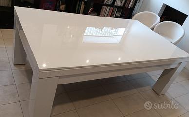 vendo meraviglioso biliardo bianco lucido 6 buche completo di triangolo con palle, stecche, gessi, spazzola per la pulizia e una copertura fatta di un pannello bianco laccato che lo rende un perfetto elemento di arredo o un tavolo riunioni e ideale anche per poter essere sfruttato come tavolo da pranzo.