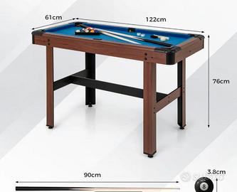 Vendo causa trasferimento bellissimo tavolo da biliardo incluso di due stecche serie di palle triangolo gessetto e spazzola per pulire il panno , colore del panno blu royal le dimensioni sono quelle della seconda foto è un tavolo per ragazzi ma anche un adulto può divertirsi a giocare senza alcun problema , buche con rete piedini regolabili per pendenze consegna a mano zona fiera del mediterraneo