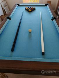Vendo biliardo (misure interne circa 190x95cm) in buone condizioni dotato di tutto l'occorrente e stecche semi nuove. Vendo per problemi di spazio e quindi inutilizzo. Trasporto a carico dell'acquirente,no spedizione.