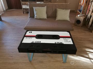 Tavolo da caffè a forma di audiocassette anni 70/80 da arredo per case uffici o sale attesa,Usato soltanto per le fotografie, utile anche per riposare libri e/o giornali . Eventuale spedizione da concordare e valutare