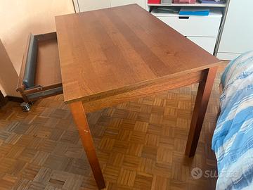 Tavolo solido in legno con cassetto estraibile predisposto anche per tastiera computer con vano portacavi sottostante. Marca IKEA. Dimensioni 75x120, h 78.