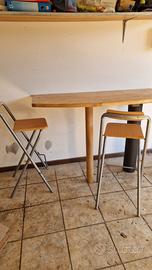 tavolo da cucina a mezzaluna, in legno, completo di due sgabelli